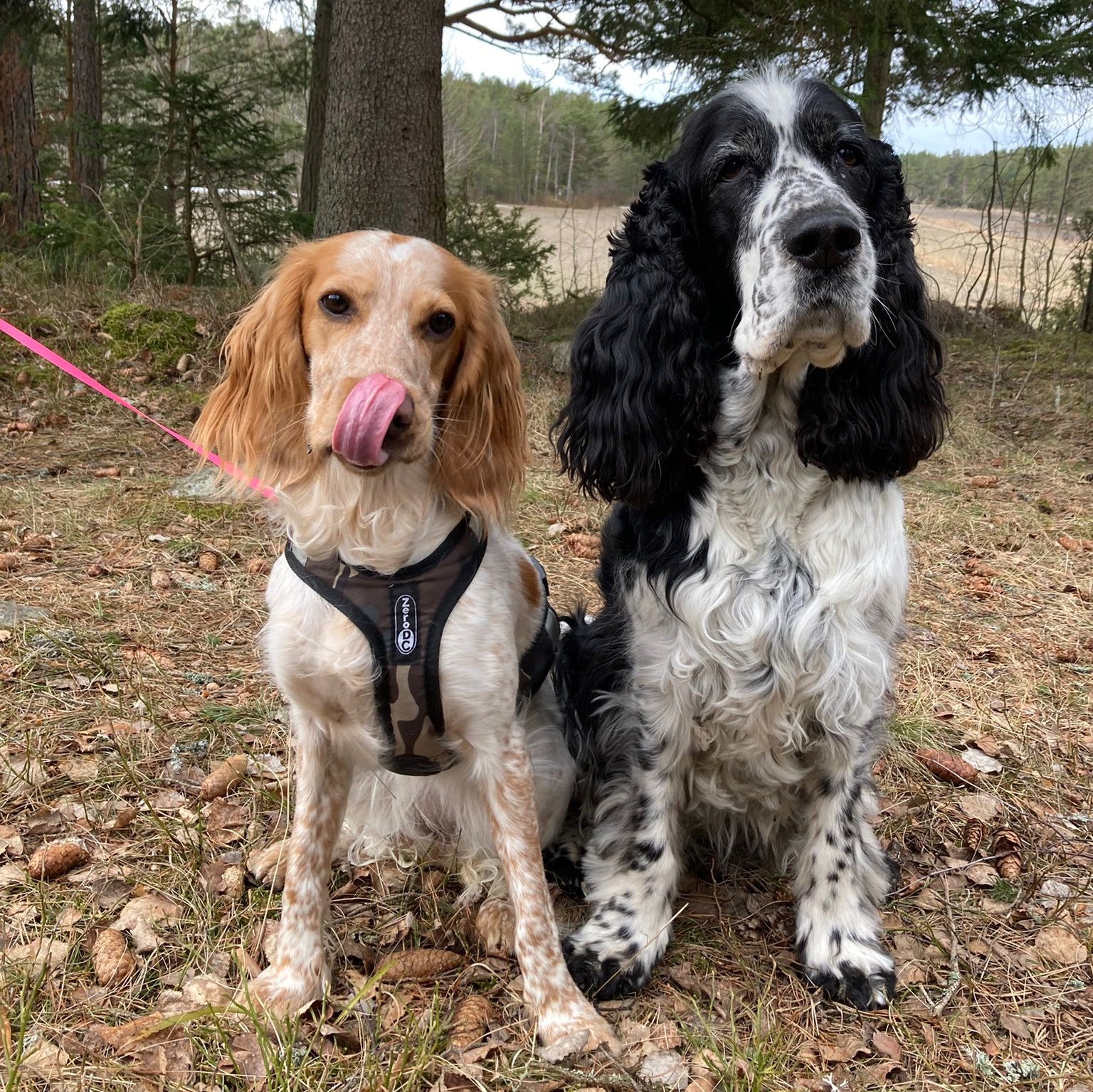 Lycka (Lintubongarin Artemis s. 13.2.2021) oli hartaasti odotettu pentu. Lycka tuli meille perheenjäseneksi ja harrastuskaveriksi. Perheeseemme kuului entuudestaan englanninspringerspanieli Penni ja Lycka pääsikin heti kun tuli kotiin treenihalleille tutustumaan.